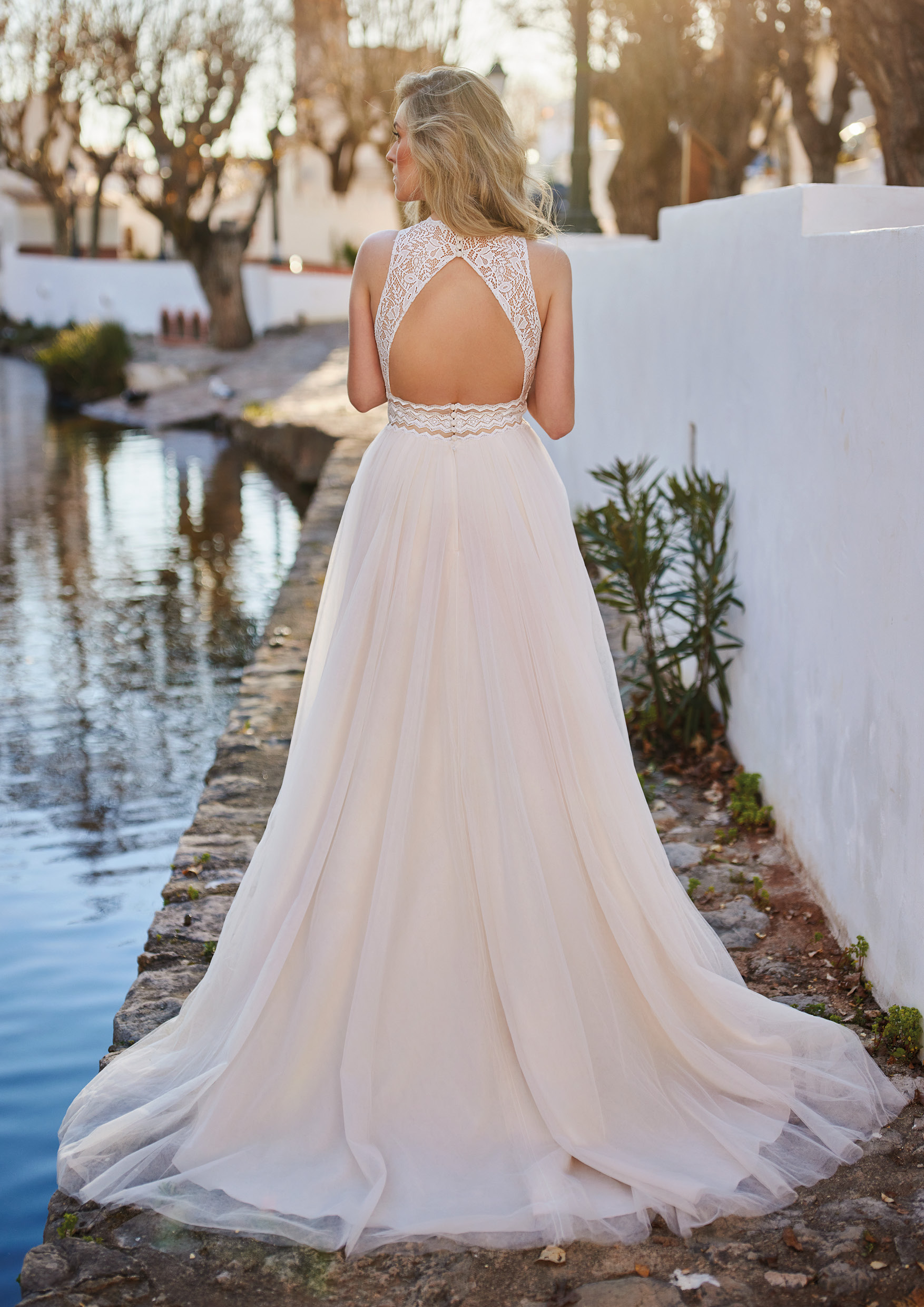 Von Boho und Vintage bezieht dieses champagnerfarbene Brautkleid in A-Linie seine Inspirationen, insbesondere wird dies im Oberteil aus märchenhaft Allover-Spitze im Vintage-Look deutlich. Das Mieder hat einem tiefen V-förmigen Ausschnitt an der Vorderseite, hinten einen traumhaftes Rückenakzent in Schlüsselloch-Optik und, und in der Mitte des Rockes sind elegante Spitzendetails eingefügt, die dem Kleid einen zusätzlichen Boho&Vintage-Touch verleihen. Auch im Farbton Elfenbein erhältlich. Alle Materialdetails anzeigen