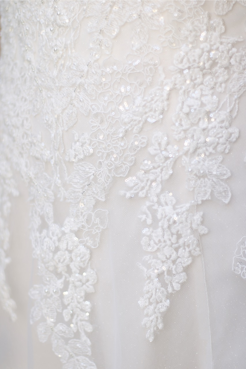 Traditioneel en elegant, deze plus size trouwjurk is ontworpen met prachtige kanten applicaties en de rug is voorzien van een korset vetersluiting voor extra ondersteuning. De rok is gemaakt met meerdere lagen soepelvallende tule en satijn. Bekijk alle materiaal details