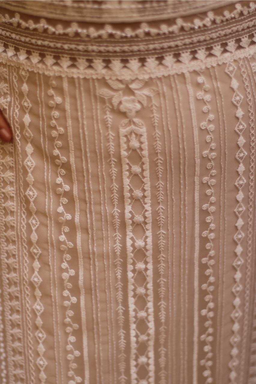 Gorgeous and feminine, this quintessential bohemian (boho) style wedding dress is designed completely with delicate all-over lace, and features a dramatic lace-up back with feminine cap sleeves. The all-over lace skirt covers a stretch satin lining for a perfect look and confident feel. See all material details